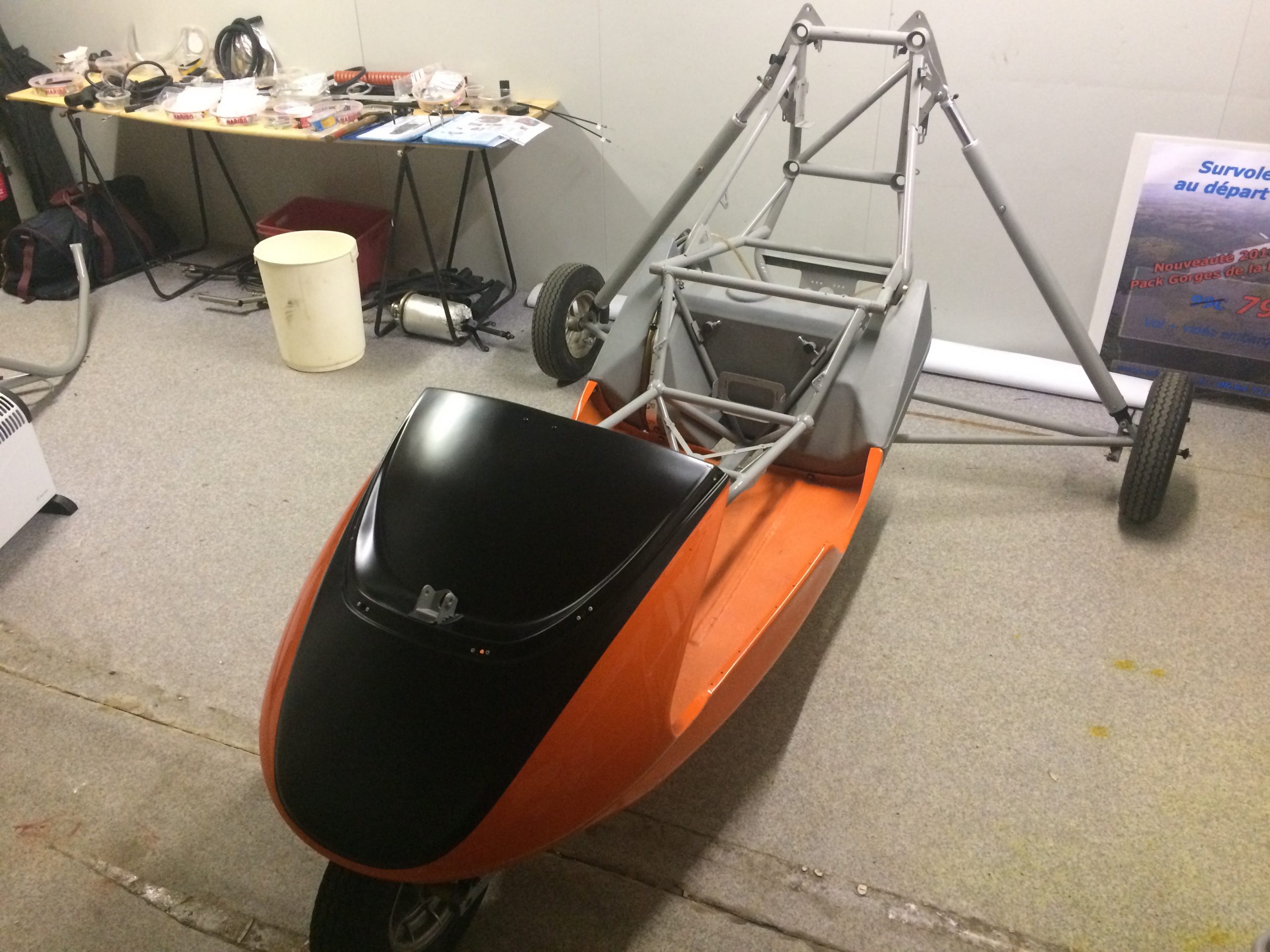 Une révision moteur, une nouvelle aile, une nouvelle radio et une nouvelle hélice, notre vaisseau amiral se refait une beauté. Et nous en avons profité pour lui faire une nouvelle peinture, signée Eric Ferrapie, un ami carrossier situé à Jonzieux, dans le massif du Pilat. C’est sur ses conseils avisés que nous avons laissé le jaune et gris d’origine et opté pour un orange/noir mat de toute beauté, qui n’est pas sans rappeler la marque de moto autrichienne KTM. Et le moins que l’on puisse dire, c’est que ça lui va plutôt bien. au vu des premières photos.